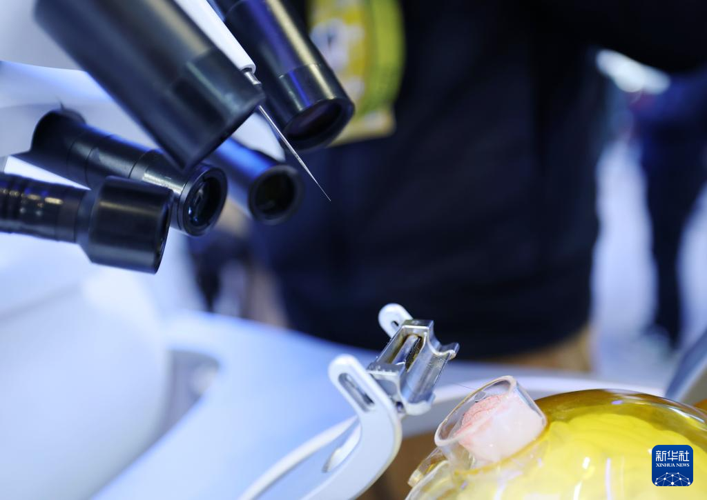 这是3月24日在中关村展示中心常设展上拍摄的一款高通量侵入式脑机接口系统。