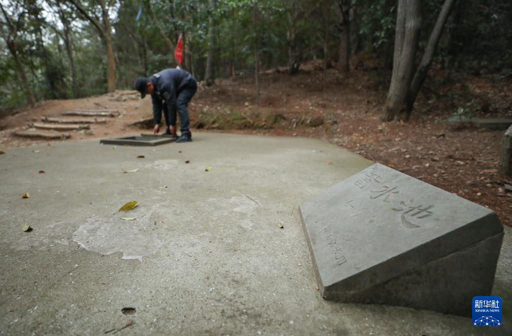 3月23日,在浙江省宁波市镇海区九龙湖旅游度假区,工作人员检查登山步道旁的蓄水池情况。景区定期检查蓄水池,保证池中有足量水、井盖可顺利开启。