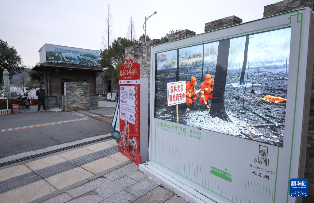 3月23日,在浙江省宁波市镇海区九龙湖旅游度假区,一处电子屏幕上播放防火宣传视频。