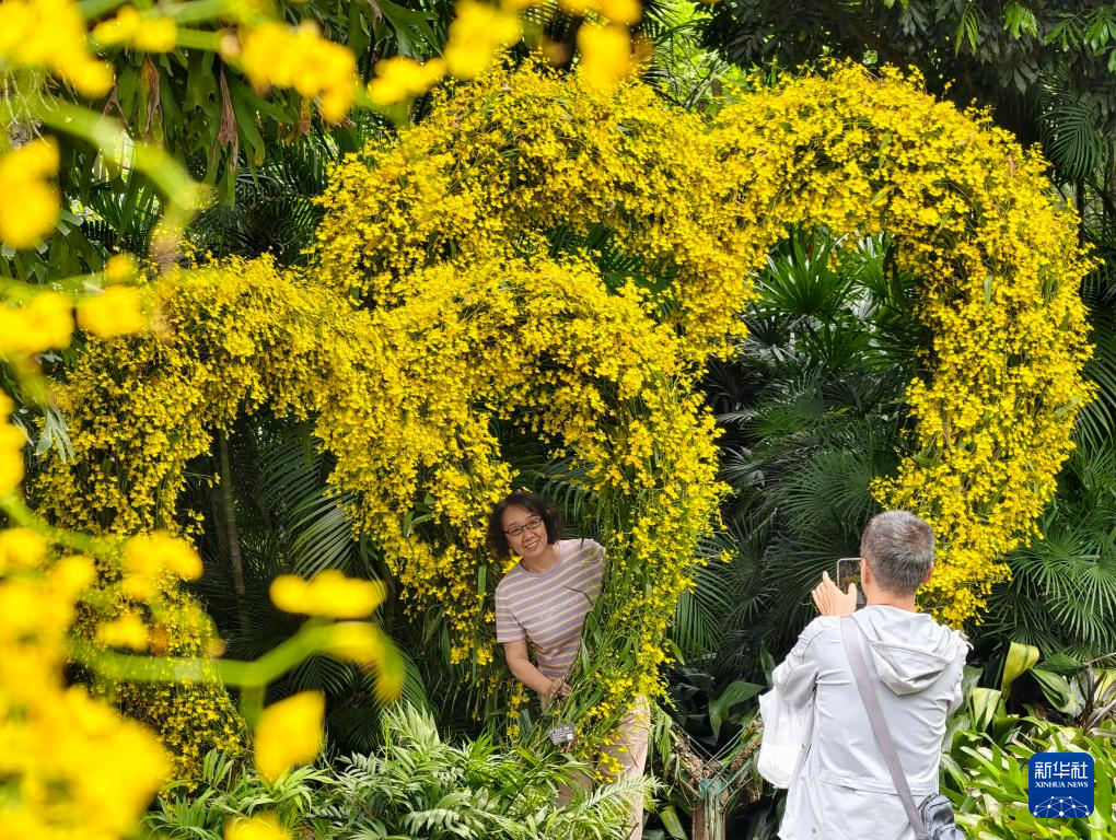3月25日,游人在广西南宁市青秀山风景区赏花拍照。