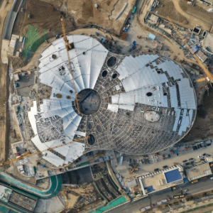 雄安新区城市文化广场建设现场(3月25日摄,无人机照片)。