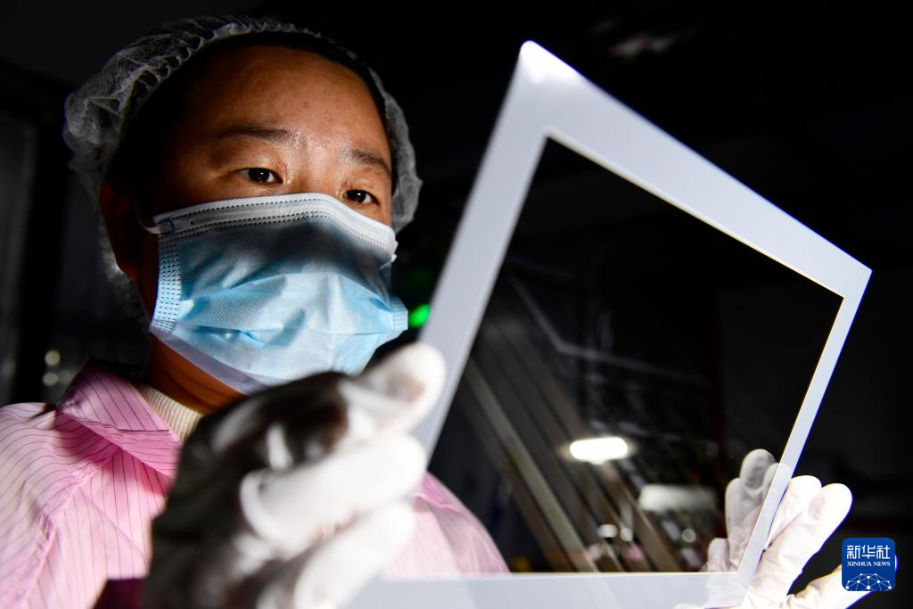 3月27日,在日照市莒县一家企业,工作人员在加工触摸屏。