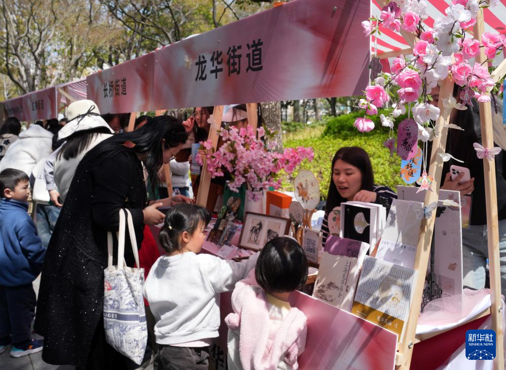 3月28日,在徐汇区的漕溪公园,市民游客在拾趣市集上选购特色文创。