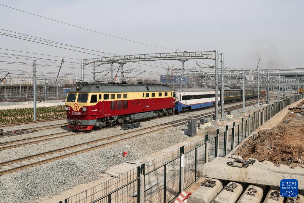 3月29日,检测列车从建设中的西安东站驶出,开往湖北郧西站。