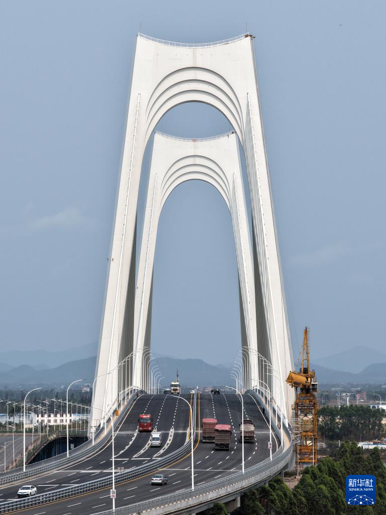 这是3月31日拍摄的建成通车的平陆运河沙井钦江大桥(无人机照片)。