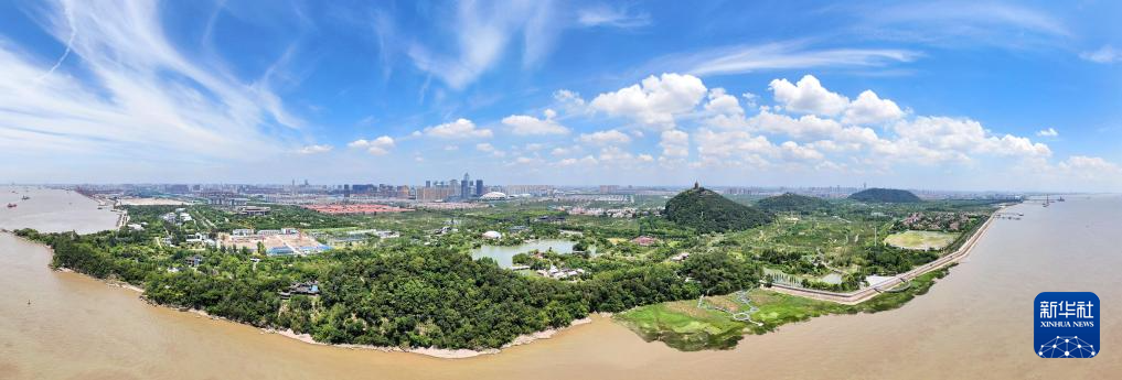 南通市崇川区五山及沿江地区长江岸线(无人机照片,2019年8月1日摄)。