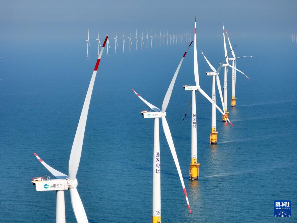 在南通市如东县拍摄的国电投南通新能源有限公司海上风电场(无人机照片,2025年2月9日摄)。