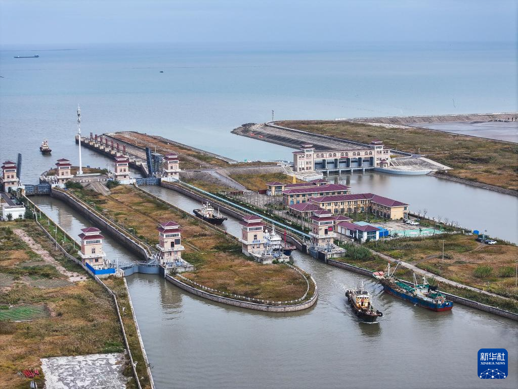 渔船进入江苏启东吕四渔港(无人机照片,2024年11月10日摄)。