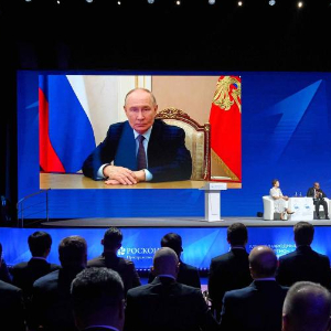 4月1日,在俄罗斯圣彼得堡举行的首届俄罗斯国际交通物流论坛上,俄罗斯总统普京发表视频致辞。