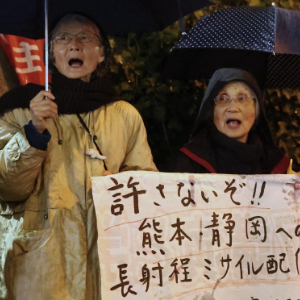 31日晚间,日本多地民众举行集会,抗议政府强行部署远程导弹。日本防卫大臣小泉进次郎当日在记者会上宣布,在熊本县和静冈县部署了具备“对敌基地攻击能力”的远程导弹。据日本媒体报道,日本防卫省当天在熊本县健军驻屯地和静冈县富士驻屯地分别部署了“25式地对舰导弹”和“25式高速滑翔弹”。