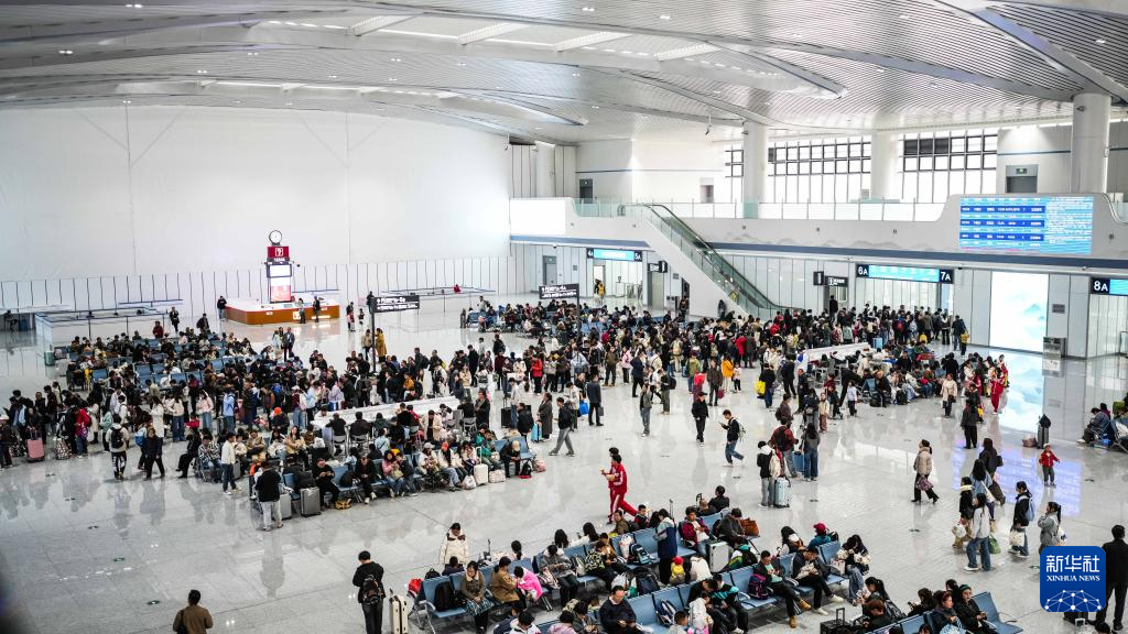 4月1日,旅客在六盘水火车站南站房候车大厅候车。