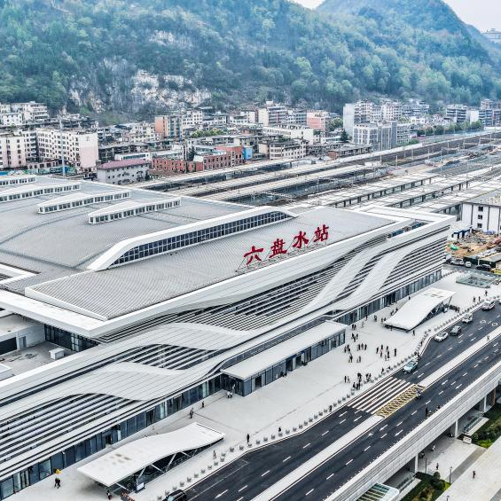 六盘水火车站南站房(无人机照片,4月1日摄)。