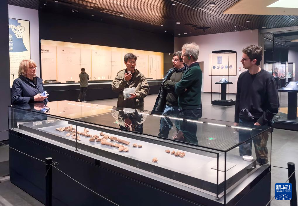 4月2日,参加中意文化遗产保护修复国际圆桌会议的意方专家在位于北京的中国考古博物馆参观馆藏文物。