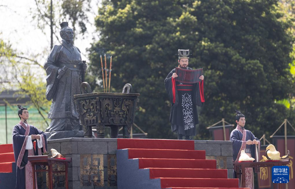 4月3日,在2026都江堰放水大典上,主祭人诵读祭文。