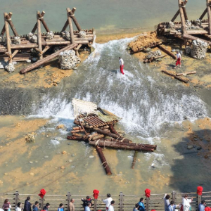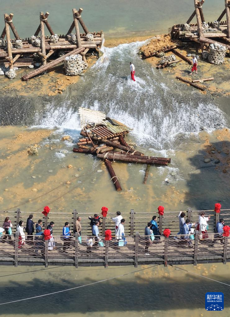 4月3日,在2026都江堰放水大典上,演员们争相打“水头”纳福。