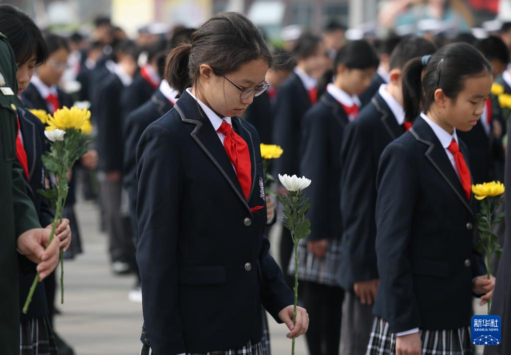 4月3日,学生代表在启动仪式上向抗战英烈默哀。