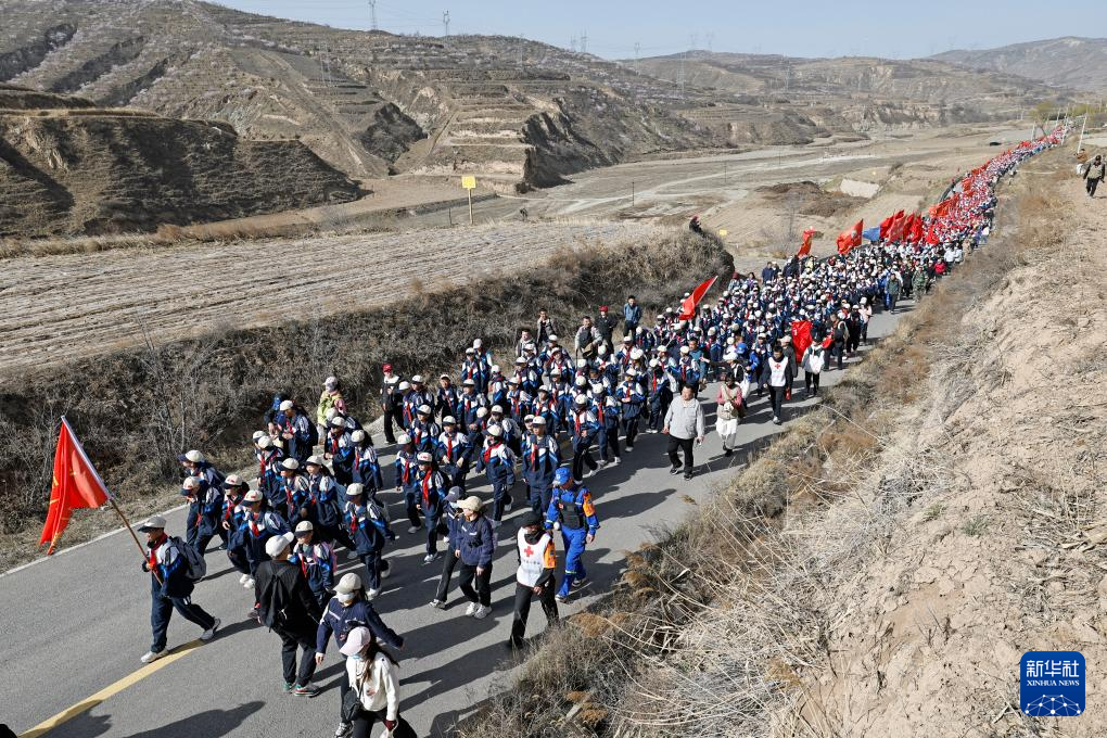 4月3日,宁夏固原二中和弘文中学等学校师生及各界人士3000多人,清晨5点从固原市出发,徒步前往位于彭阳县的任山河烈士陵园,祭奠长眠在那里的396位烈士,全程往返108里。