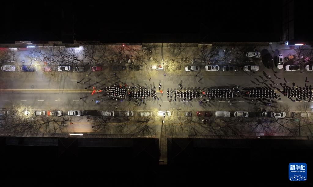 4月3日清晨,参加徒步祭英烈活动的学生准备从弘文中学出发(无人机照片)。