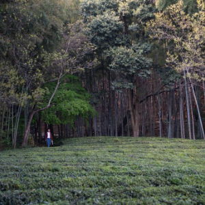 4月1日,在位于安徽宣城的敬亭山国家森林公园,游客经过敬亭山山腰处的一处茶园。