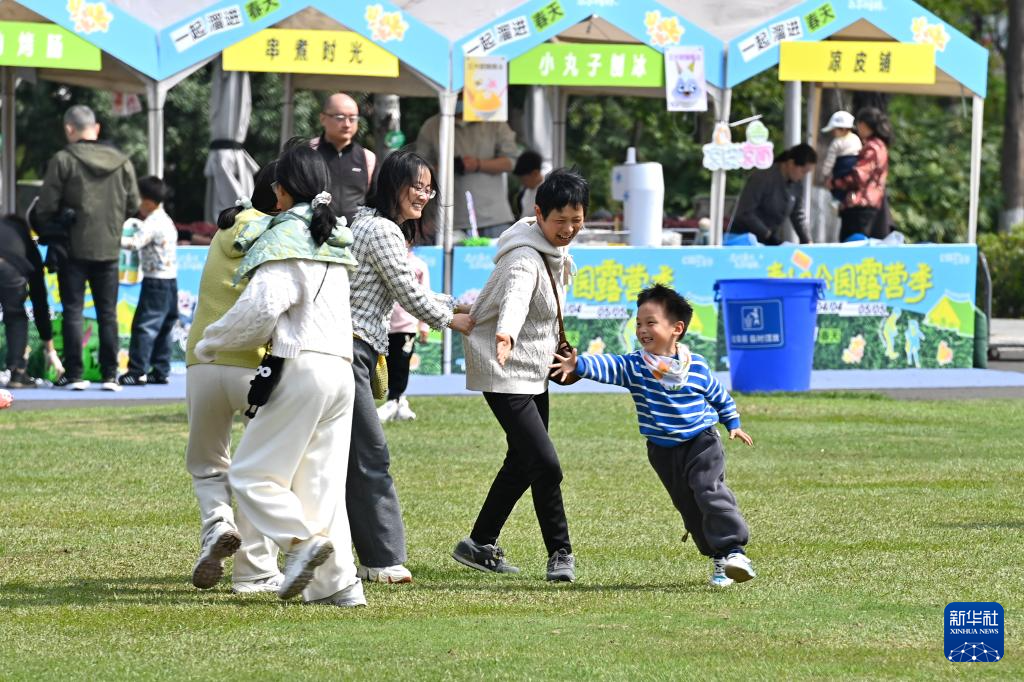 4月4日,游客在山东省滕州市龙阳镇“龙湖月色”省级乡村振兴齐鲁样板片区内露营休闲。