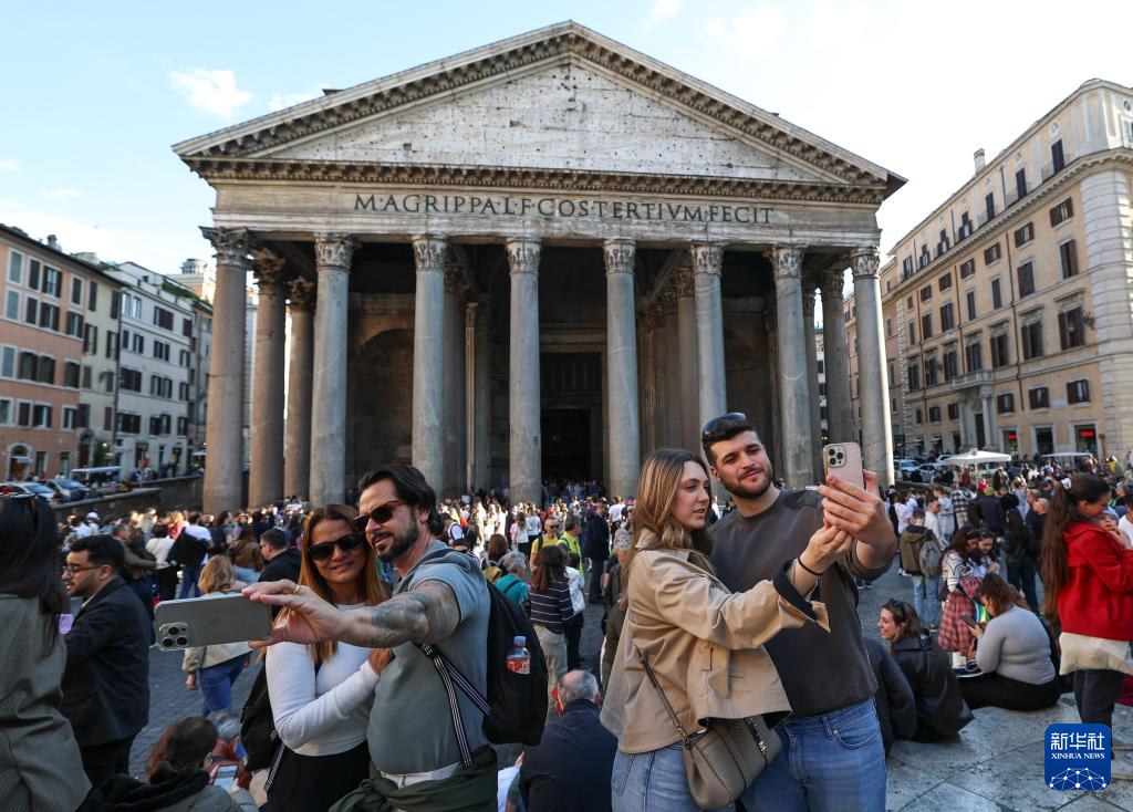 复活节假期到来,意大利首都罗马迎来客流高峰,人们来到斗兽场、许愿池、西班牙广场等标志性景点参观游览,享受假日时光。