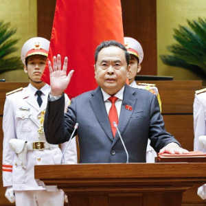 越南第十六届国会第一次会议4月6日投票表决,陈青敏当选越南国会主席。陈青敏随后宣誓就职。