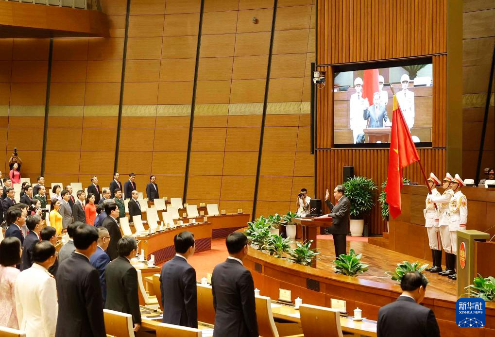 4月6日,在越南河内,陈青敏宣誓就任越南国会主席。