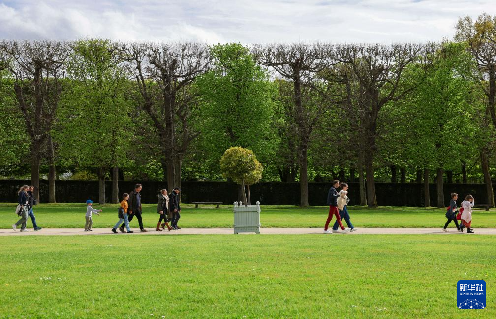 4月5日,人们在法国巴黎近郊索镇的国玺公园游览。