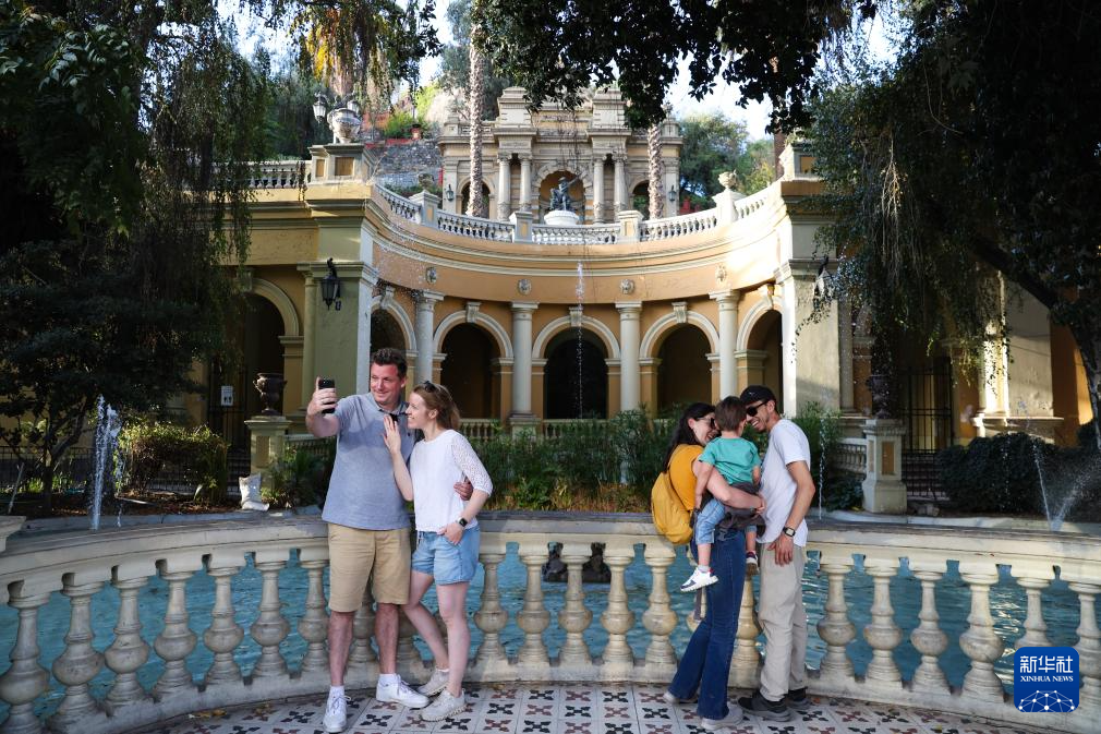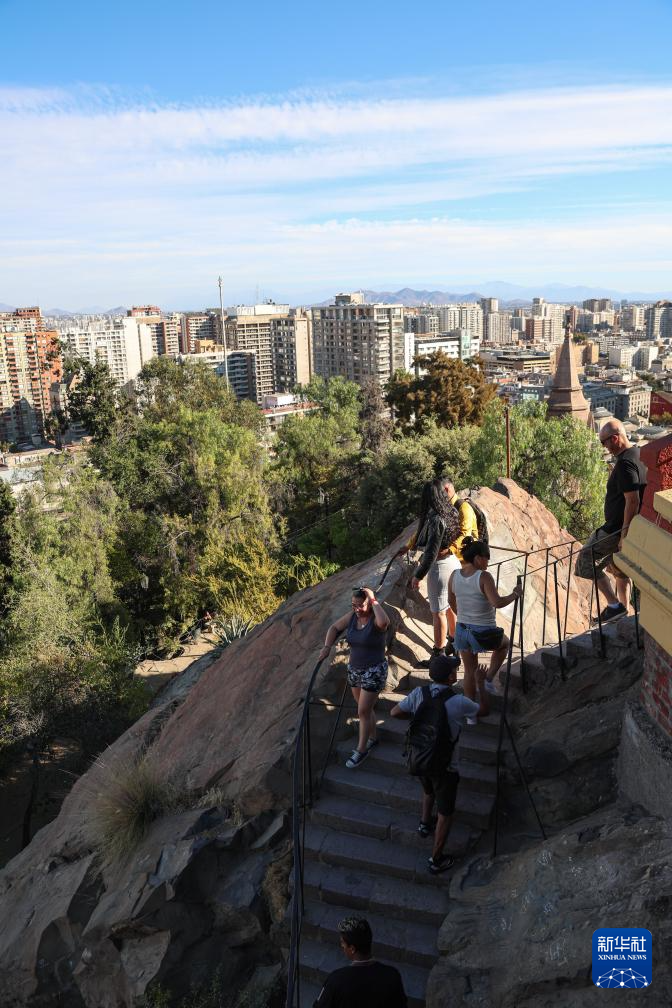 4月5日,人们在智利圣地亚哥的圣卢西亚山公园游览。