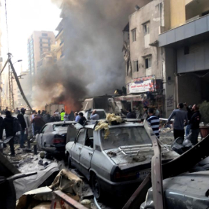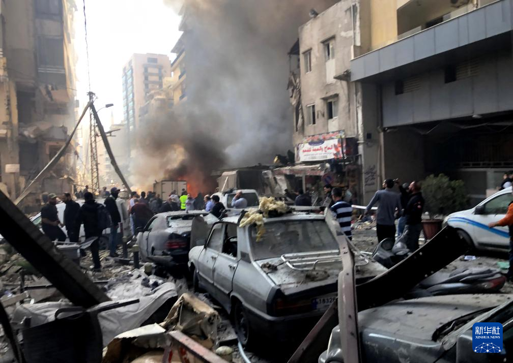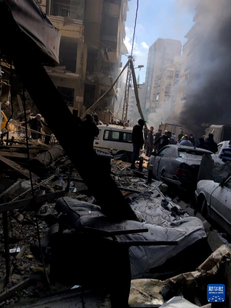 4月8日,在黎巴嫩首都贝鲁特,以色列发动的空袭导致汽车和建筑被毁(手机照片)。