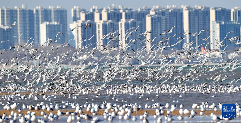 这是4月7日在河北省秦皇岛市北戴河区沿海地区拍摄的海鸥。