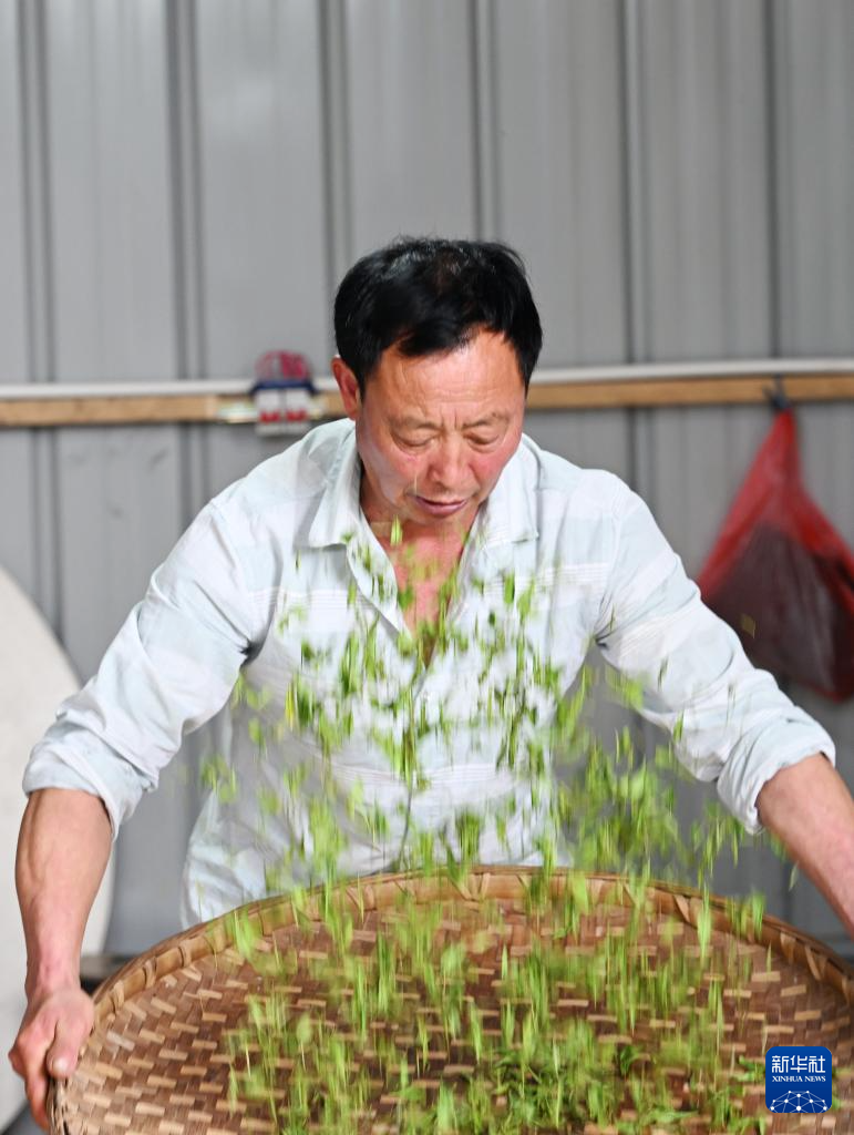 4月11日,茶农在重庆市永川区廖云祥茶树种植基地制作茶叶。