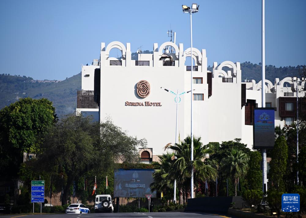 这是4月10日在巴基斯坦首都伊斯兰堡拍摄的谈判举行地点塞雷纳酒店外景。