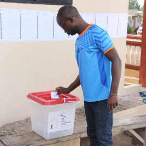 4月12日,一名选民在贝宁维达市一处投票站投票。