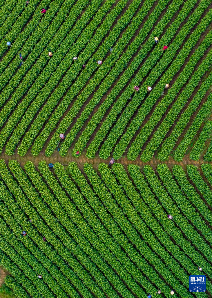 正值春茶采摘季,各地茶农抢抓晴好天气采摘茶叶,供应市场。