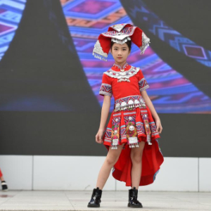 4月13日,广西南宁市滨湖路小学教育集团滨湖校区,学生在表演民族服装秀。