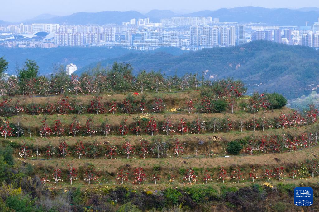 这是延安市宝塔区桥沟街道烟洞沟村苹果园景色(2025年10月17日摄,无人机照片)。