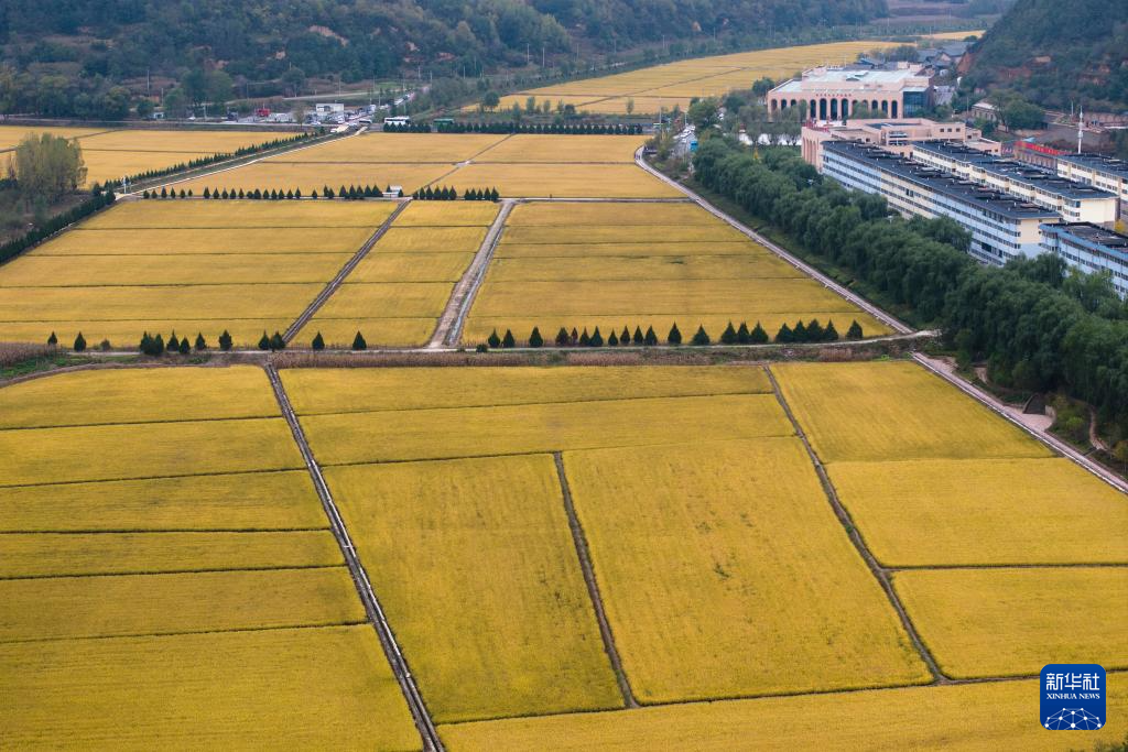 这是2025年10月16日拍摄的南泥湾稻田景色(无人机照片)。