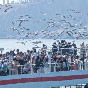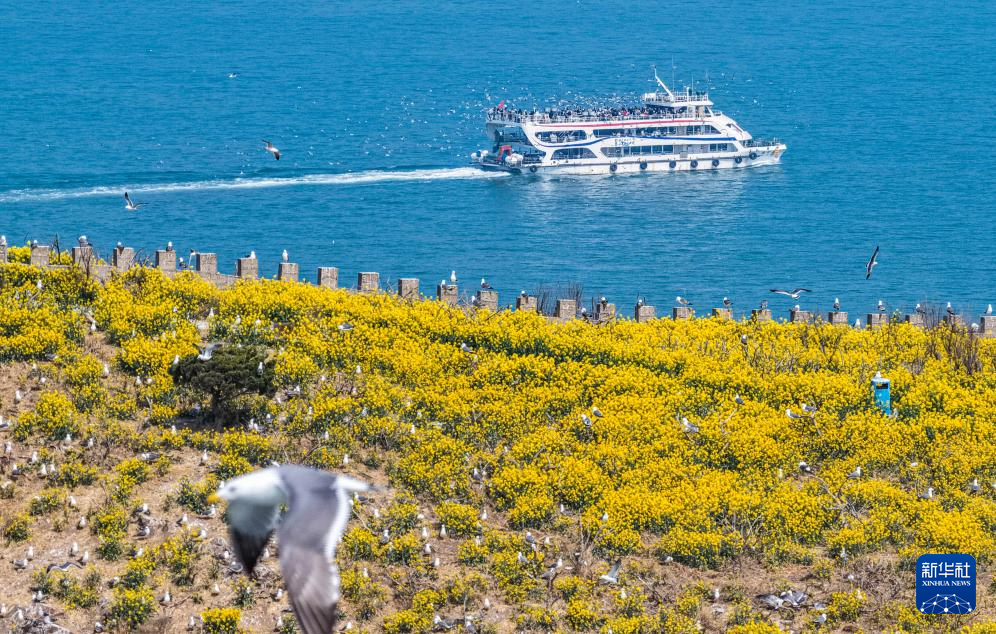 眼下,山东省荣成市海驴岛上油菜花绽放,数万只黑尾鸥在此栖息繁衍,优美的生态画卷吸引众多游客乘坐游轮前往海驴岛海域休闲游玩。