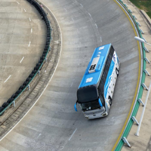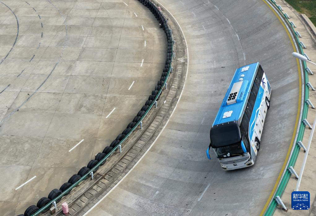客车在宇通新能源厂区试验场内测试(2026年3月30日摄,无人机照片)。