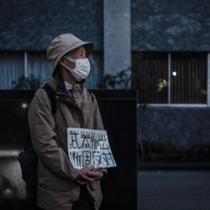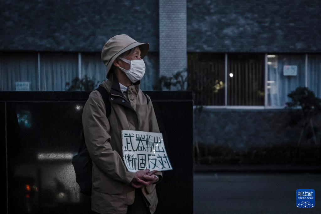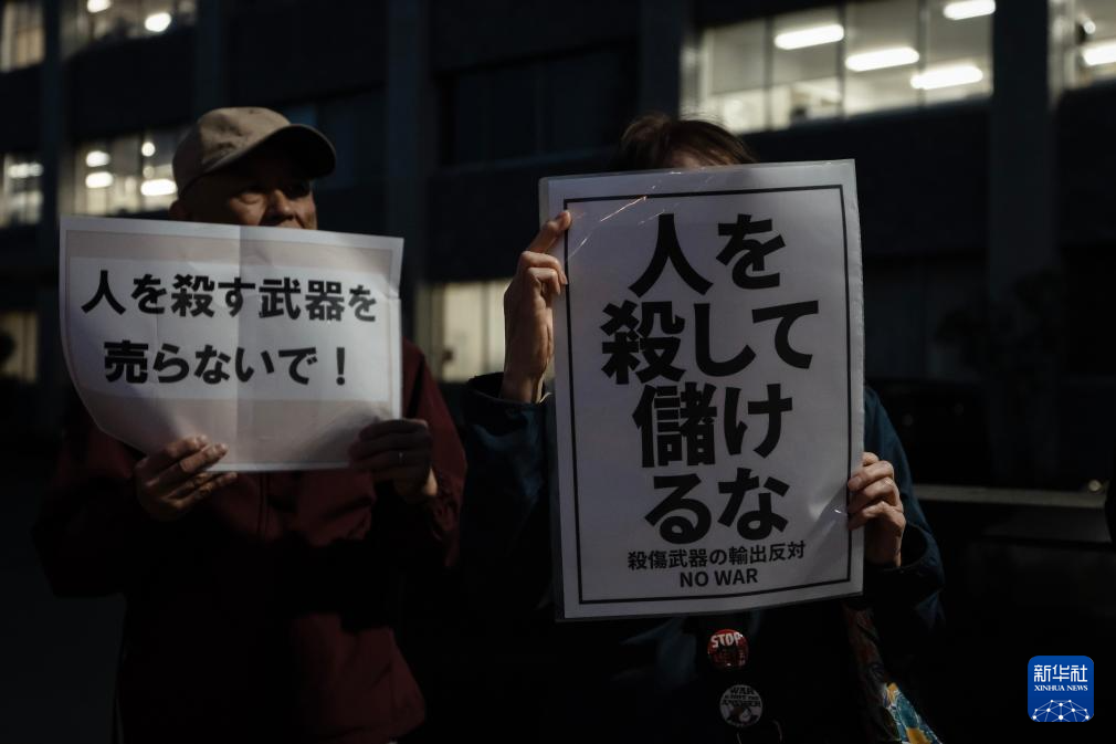 针对高市早苗政府计划近期修改“防卫装备转移三原则”及其运用指南,日本民众16日晚在东京的首相官邸前举行抗议集会,反对解禁杀伤性武器出口。