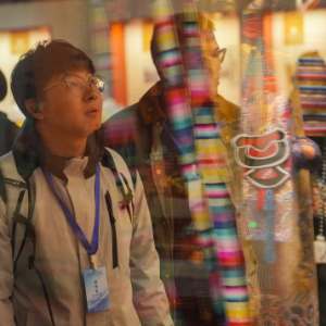 4月17日,西藏全区博物馆馆长培训班的学员在西藏博物馆现场交流学习。