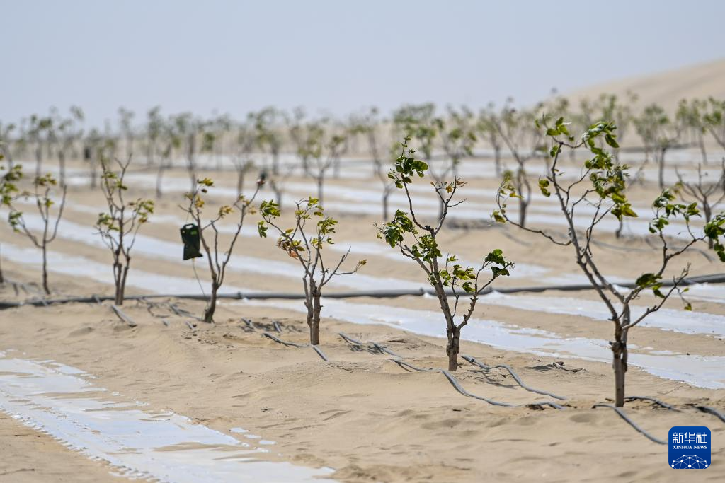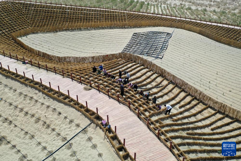 眼下,新疆塔克拉玛干沙漠南缘一派繁忙景象。人们平整沙丘、铺设草方格、嫁接苗木、栽种中药材……塔克拉玛干沙漠边缘治沙正酣。