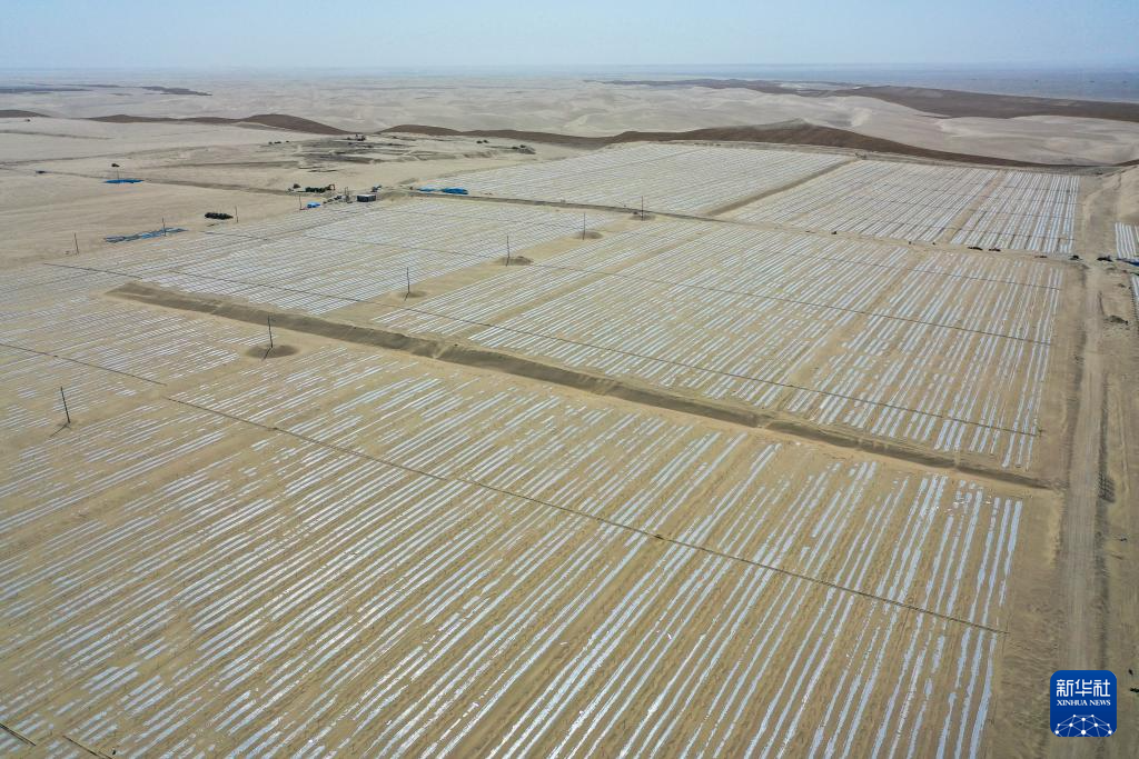 塔克拉玛干沙漠边缘阻击战打响以来,新疆依托生物治沙项目,通过乔木护绿、灌木固沙、药材增效,构建起“乔、灌、药”立体防护网,让荒漠逐步焕发生机。
