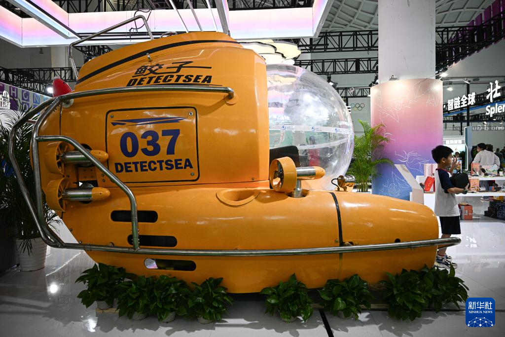 4月18日在第六届消博会重庆展台拍摄的“鲛子”号载人潜水艇。