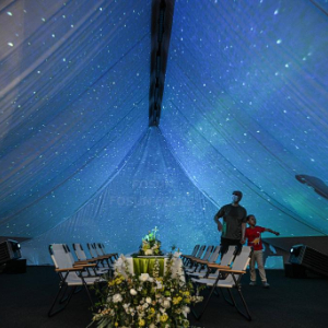 4月18日,参观者在第六届消博会复星展台感受沉浸式度假体验空间。
