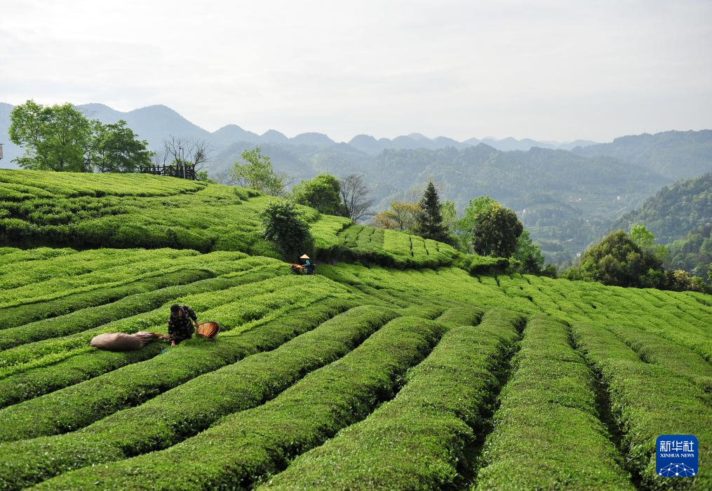 4月19日,村民在湖北省宣恩县万寨乡伍家台村一茶园里采摘谷雨茶。