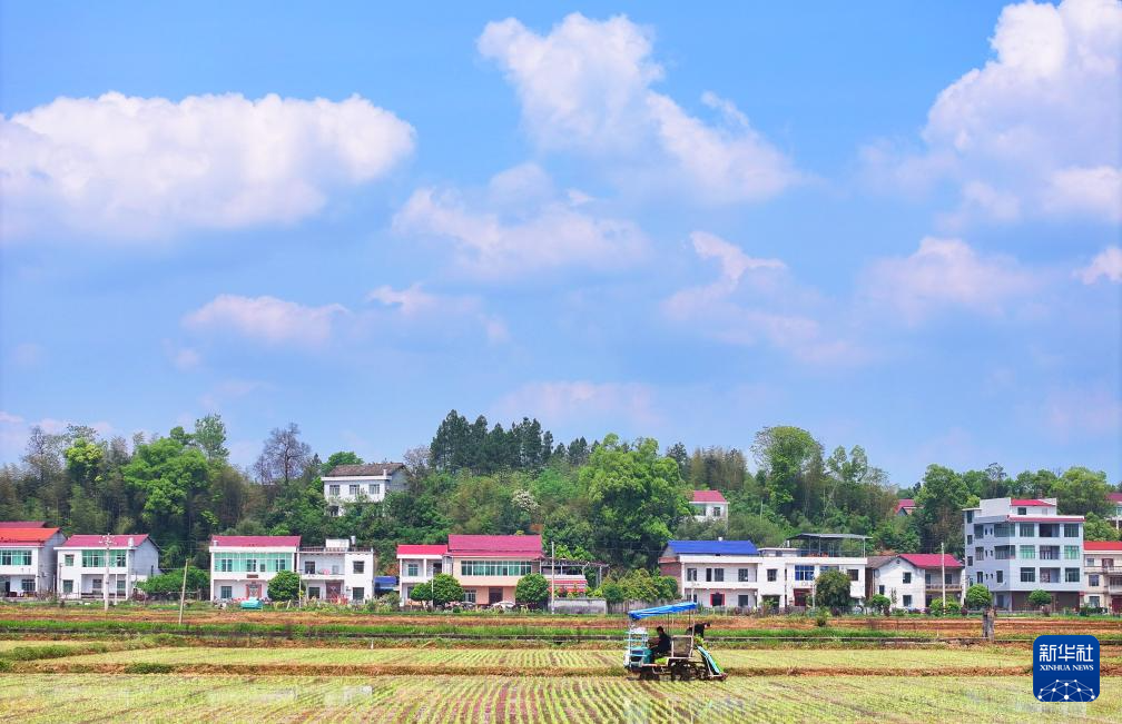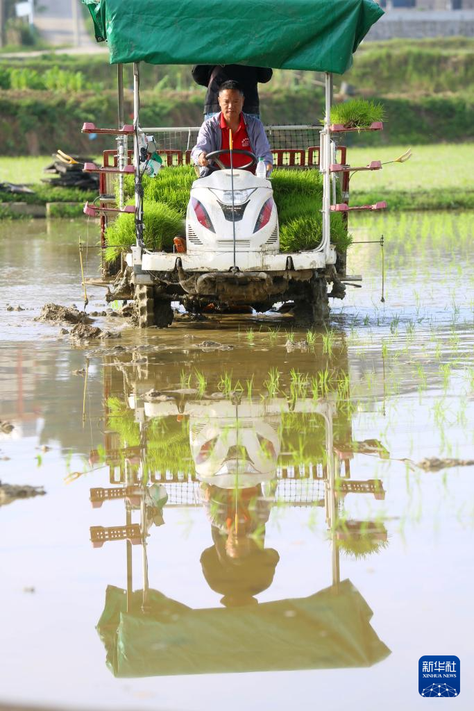 4月19日,湖南省邵阳市隆回县三阁司镇龙洲村,农机手驾驶插秧机插早稻。