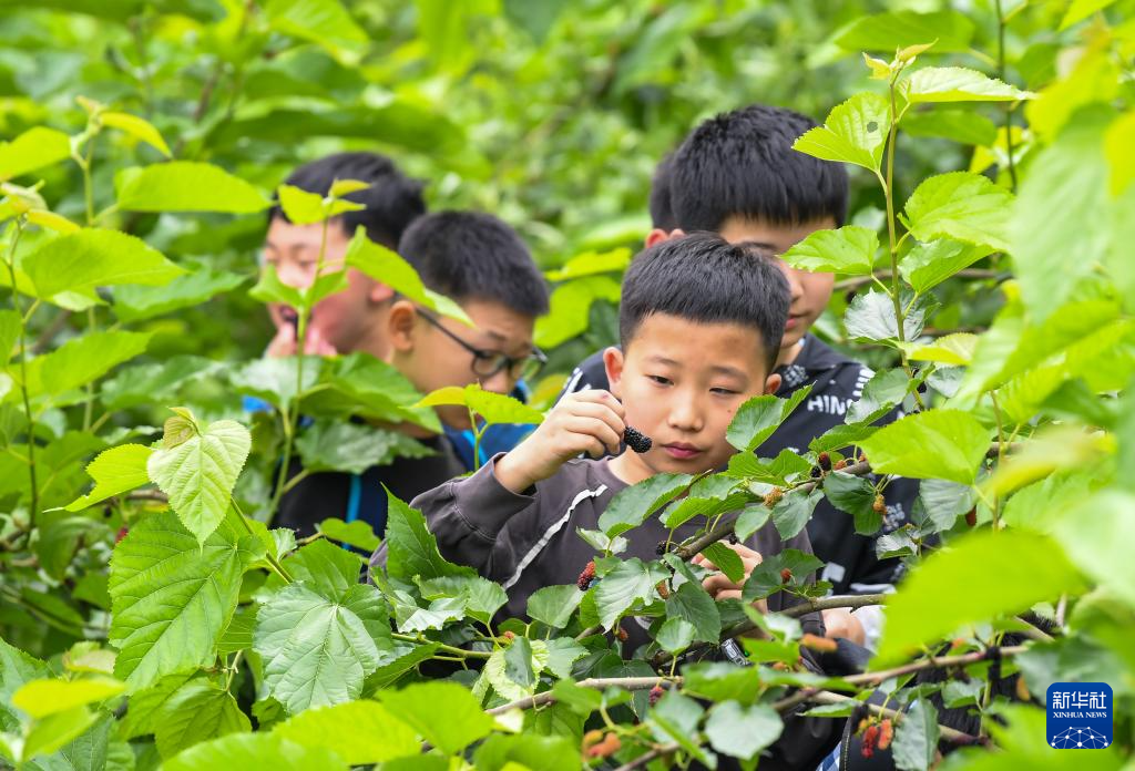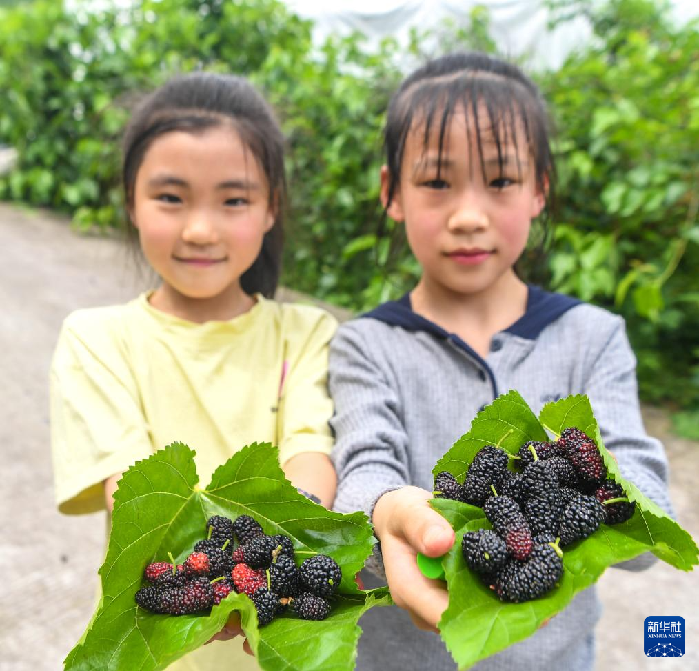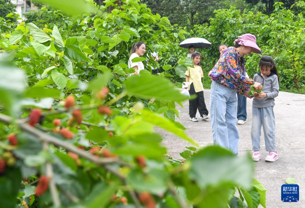 近日,位于重庆丰都县长江岸边的三峡紫果桑采摘园迎来丰收季,桑葚挂满枝头,游客穿梭采摘,尽享春日田园乐趣。