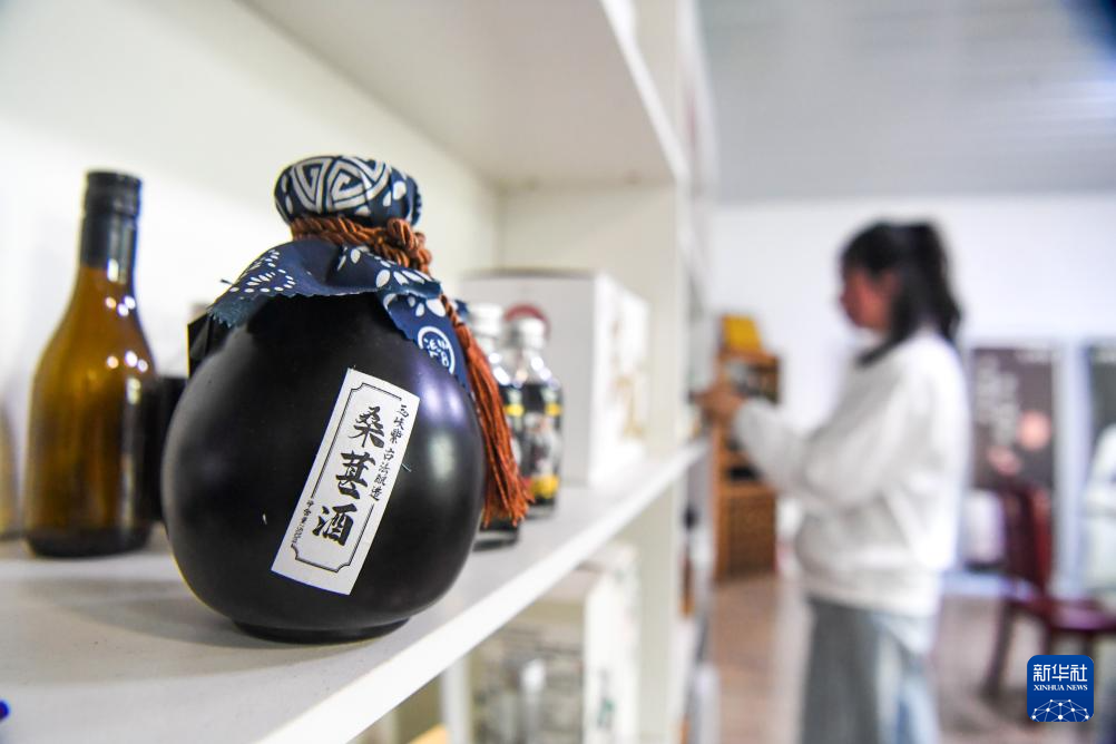 这是三峡紫果桑采摘园延伸开发出的桑葚酒、桑葚果干等系列产品(4月19日摄)。